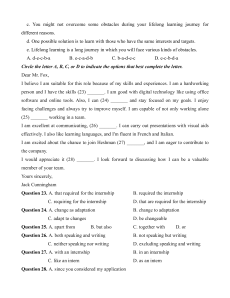 Question 27. A. with an internship B. in an internship C. like an intern D. as an intern