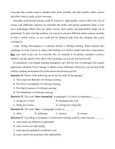 e. Lifelong learning is a long journey in which you will face various kinds of obstacles. A. d-e-c-b-a B. e-c-a-d-b C. b-a-d-e-c D. e-c-b-d-a