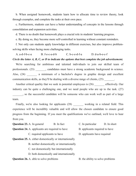 professionals. (23) _______, candidates must have a strong academic background in science.