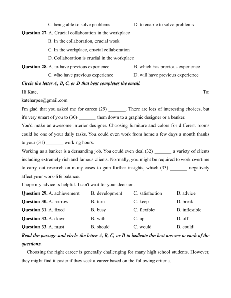 I'm glad that you asked me for career (29) _______. There are lots of interesting choices, but