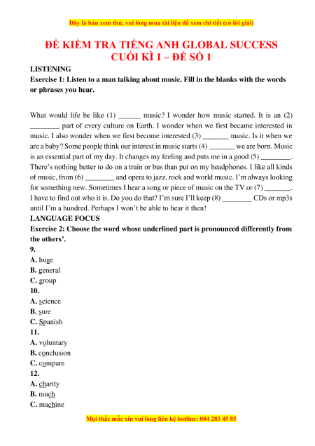 ĐỀ KIỂM TRA TIẾNG ANH GLOBAL SUCCESS