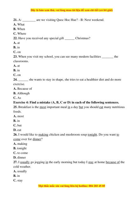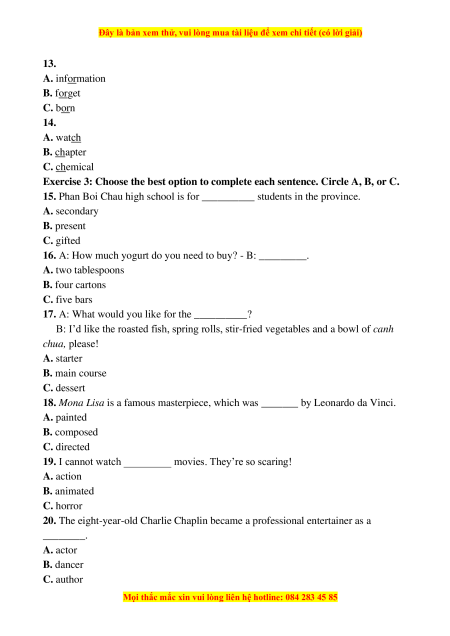 Đây là bản xem thử, vui lòng mua tài liệu để xem chi tiết (có lời giải)