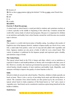 Giải thích: Học sinh Nhật Bản thường ăn hải sản, salad, súp rau củ cùng với cơm, và