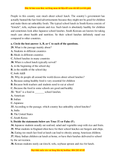 Thông tin: The typical school lunch in South Korea consists of “kimchi”, tofu, soybean