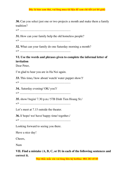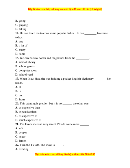 Đây là bản xem thử, vui lòng mua tài liệu để xem chi tiết (có lời giải)