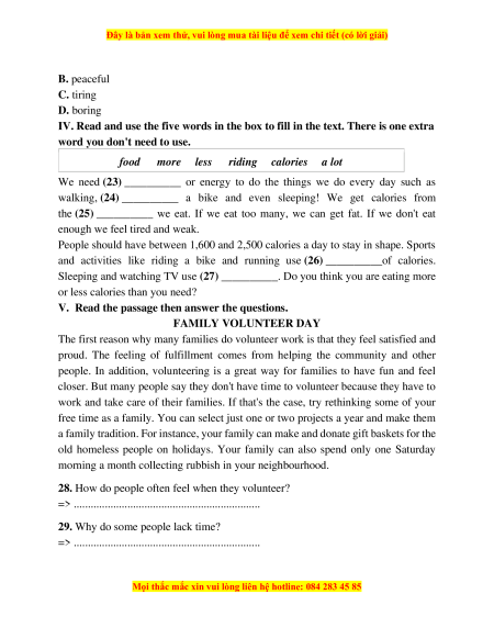 V. Read the passage then answer the questions. FAMILY VOLUNTEER DAY