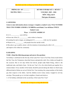 Thời gian: 60 minutes I. LISTENING