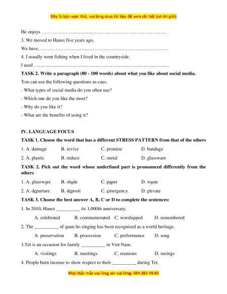 Đây là bản xem thử, vui lòng mua tài liệu để xem chi tiết (có lời giải)