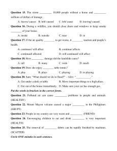 Question 22. Mount Mayon volcano caused a major _________ in the Philippines. (ERUPT)