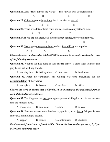 Question 26. Ann: “How tall was the wave?” – Ted: “It was over 20 meters long.” A B C D