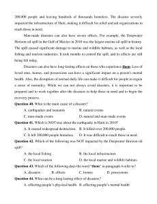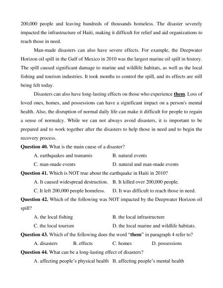 Read the text about disasters. Choose the best answers (A, B, C, or D).