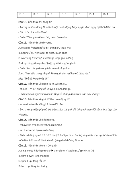 Question 13. Mil ions of young women around the world have subscribed ______ Victoria’s beauty channel. A. as B. for C. to D. with