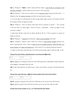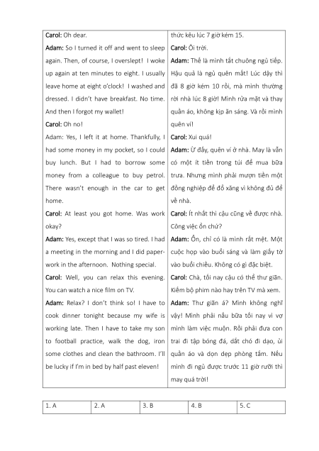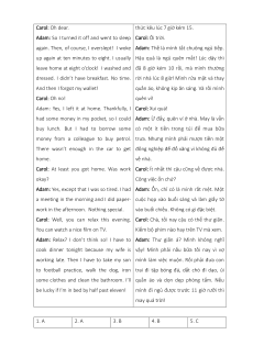 Question 4. In the morning, Adam didn’t have time to … A. shower. B. eat breakfast. C. buy petrol.