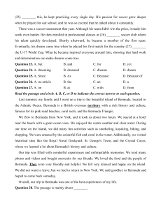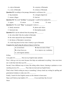 Question 28. The passage is mainly about ________. A. a trip to Bermuda B. a mystery of Bermuda C. a view of Bermuda D. a history of Bermuda