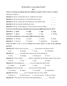Đề thi Cuối kì 1 Tiếng Anh 9 Ilearn Smart world (Đề 3 kèm file nghe)