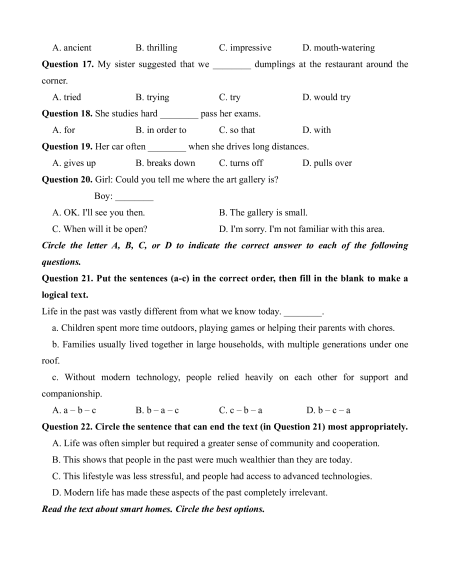 Question 22. Circle the sentence that can end the text (in Question 21) most appropriately.