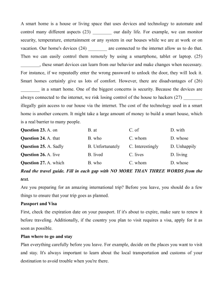 vacation. Our home's devices (24) ________ are connected to the internet allow us to do that.