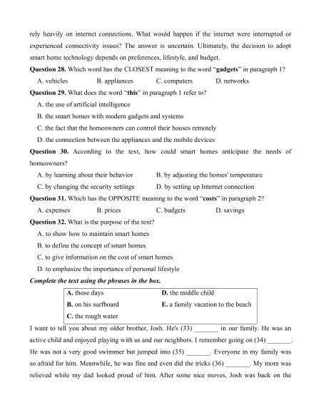 Question 28. Which word has the CLOSEST meaning to the word “gadgets” in paragraph 1? A. vehicles B. appliances C. computers D. networks