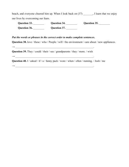 He was not a very good swimmer but jumped into (35) _______. Everyone in my family was