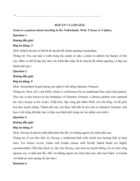 Listen to a podcast about traveling in the Netherlands. Write T (true) or F (false).