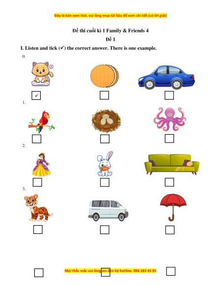 Đề thi cuối kì 1 Tiếng Anh lớp 4 Family and Friends (Đề 1 kèm file nghe)
