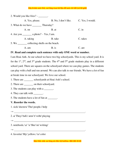 1. There are _______ schoolyards at Hoai Anh’s school.