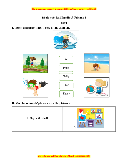 Đề thi cuối kì 1 Family & Friends 4 Đề 4