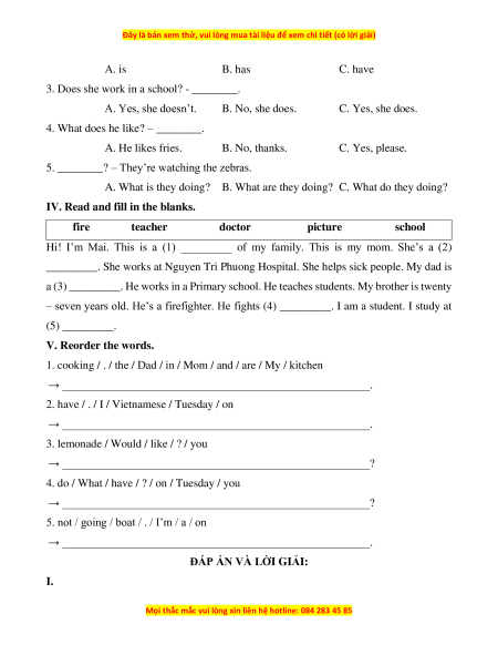 Hi! I’m Mai. This is a (1) _________ of my family. This is my mom. She’s a (2)
