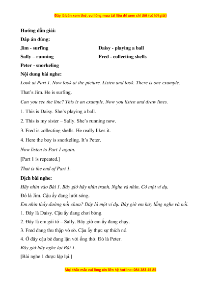 Fred - collecting shells Peter - snorkeling Nội dung bài nghe: