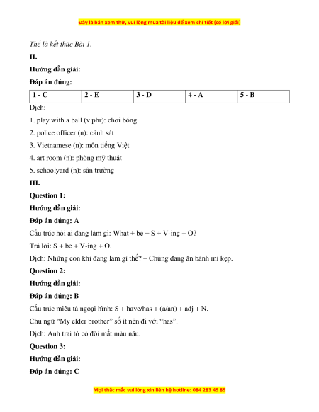 ĐÁP ÁN VÀ LỜI GIẢI: I.
