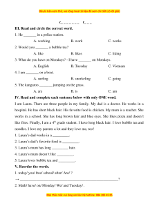 3. What do you have on Mondays? - I have _______ on Mondays. A. English B. Tuesday C. Vietnam 4. I am _______ on a boat. A. surfing B. snorkeling C. going