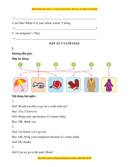 ĐÁP ÁN VÀ LỜI GIẢI: I. Hướng dẫn giải: Đáp án đúng: Nội dung bài nghe: 1.