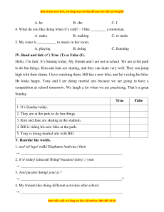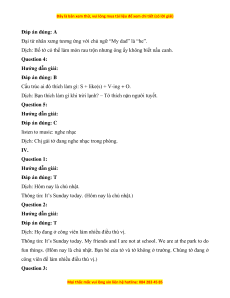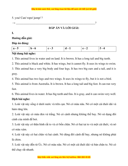 ĐÁP ÁN VÀ LỜI GIẢI: I. Hướng dẫn giải: Đáp án đúng: a - 5 b - 6 c - 3 d - 1 e - 2 f - 4 Nội dung bài nghe: