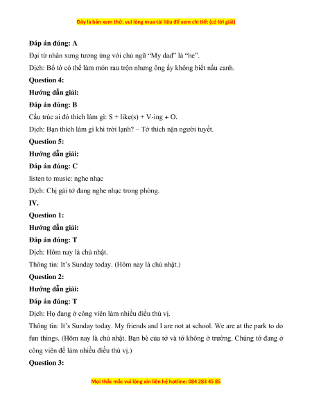 Dịch: Hôm nay trời ấm áp. Bạn có muốn đi dạo không? Question 3: Hướng dẫn giải: