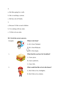 III. Circle the correct answers. Example: Where is he from? A. He’s from Thailand. B. He’s from Malaysia. C. He’s from Japan. 1.