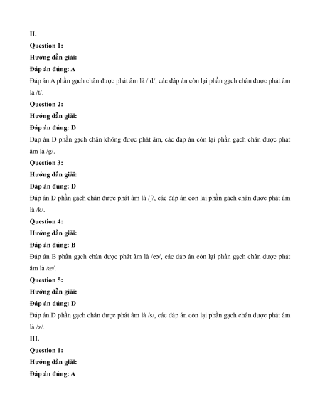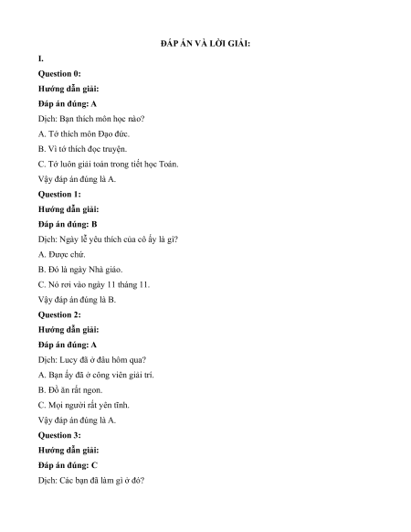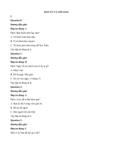 ĐÁP ÁN VÀ LỜI GIẢI: I. Question 0: Hướng dẫn giải: Đáp án đúng: A