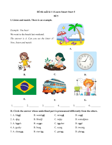 II. Circle the answer whose underlined part is pronounced differently from the others. 1. A. liked B. watched C. missed D. used 2. A. sing B. Brazil C. noisy D. sometimes 3. A. beach B. ocean C. teacher D. read 4. A. yucky B. busy C. scary D. twenty 5. A. changes B. movies C. games D. planes III. Read and match.