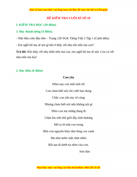 ĐỀ KIỂM TRA CUỐI KÌ SỐ 10