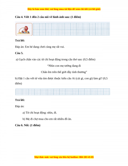 Đáp án: Em bé đang chơi cùng mẹ rất vui. Câu 5.