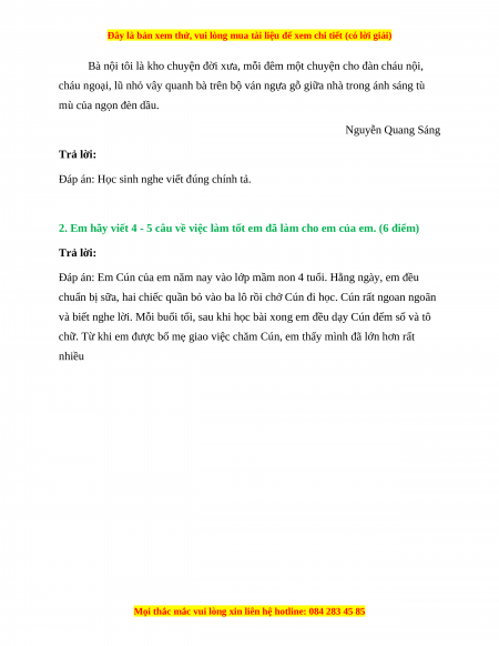 2. Em hãy viết 4 - 5 câu về việc làm tốt em đã làm cho em của em. (6 điểm)
