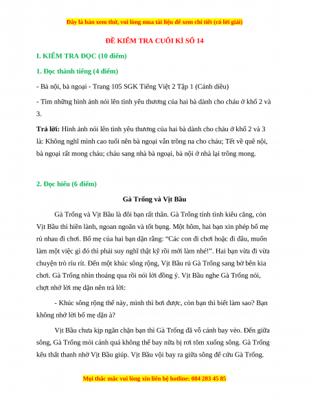 ĐỀ KIỂM TRA CUỐI KÌ SỐ 14
