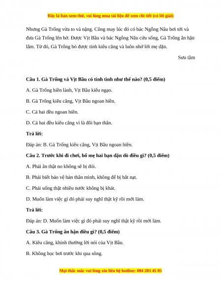Câu 1. Gà Trống và Vịt Bầu có tính tình như thế nào? (0,5 điểm)