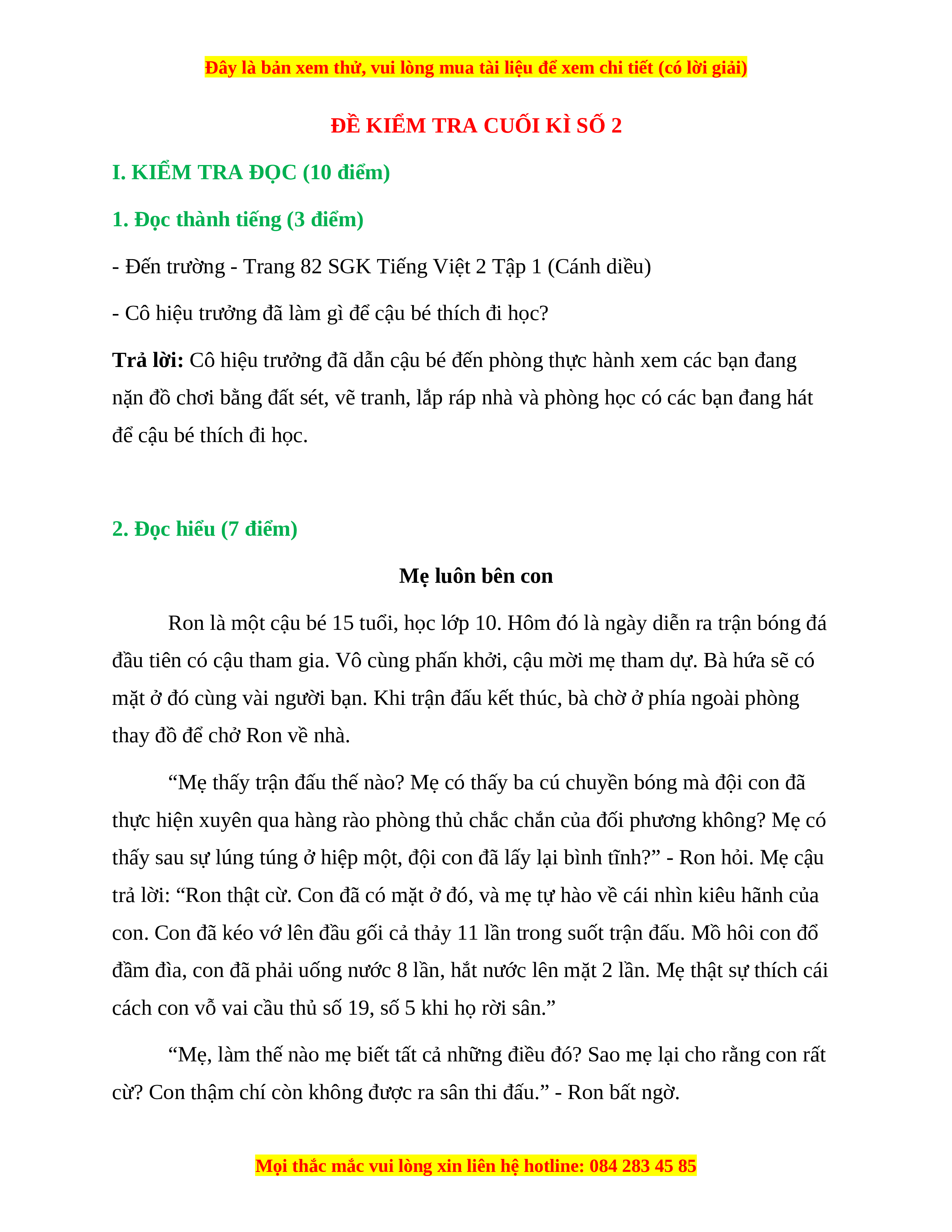 2. Đọc hiểu (7 điểm) Mẹ luôn bên con