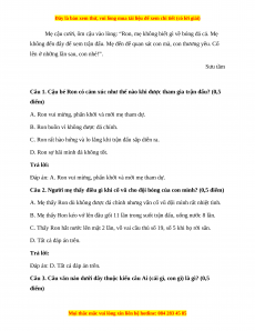 Câu 1. Cậu bé Ron có cảm xúc như thế nào khi được tham gia trận đấu? (0,5 điểm)