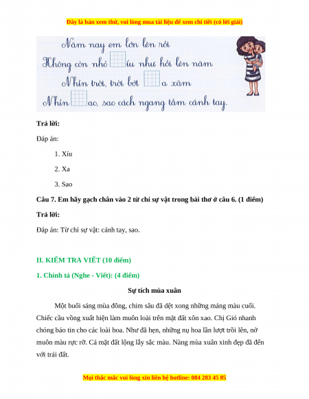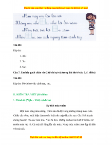 Câu 7. Em hãy gạch chân vào 2 từ chỉ sự vật trong bài thơ ở câu 6. (1 điểm) Trả lời: