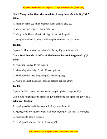 Câu 1. Mong muốn, khao khát của thầy cô trong đoạn văn trên là gì? (0,5 điểm)