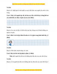 của mình đến các thầy cô giáo của em. (0,5 điểm) Trả lời: