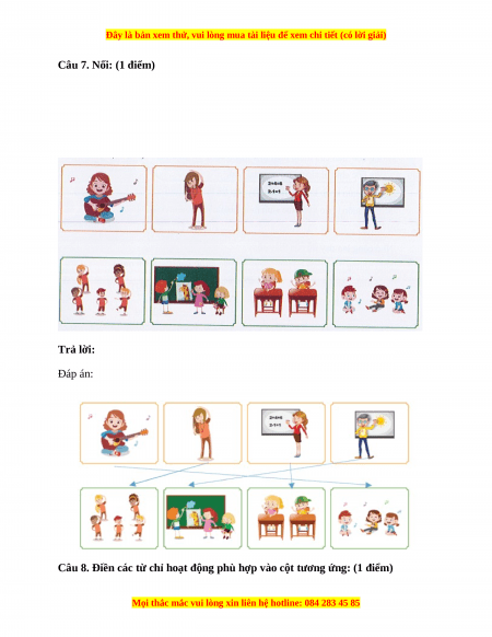 Câu 7. Nối: (1 điểm) Trả lời: Đáp án: