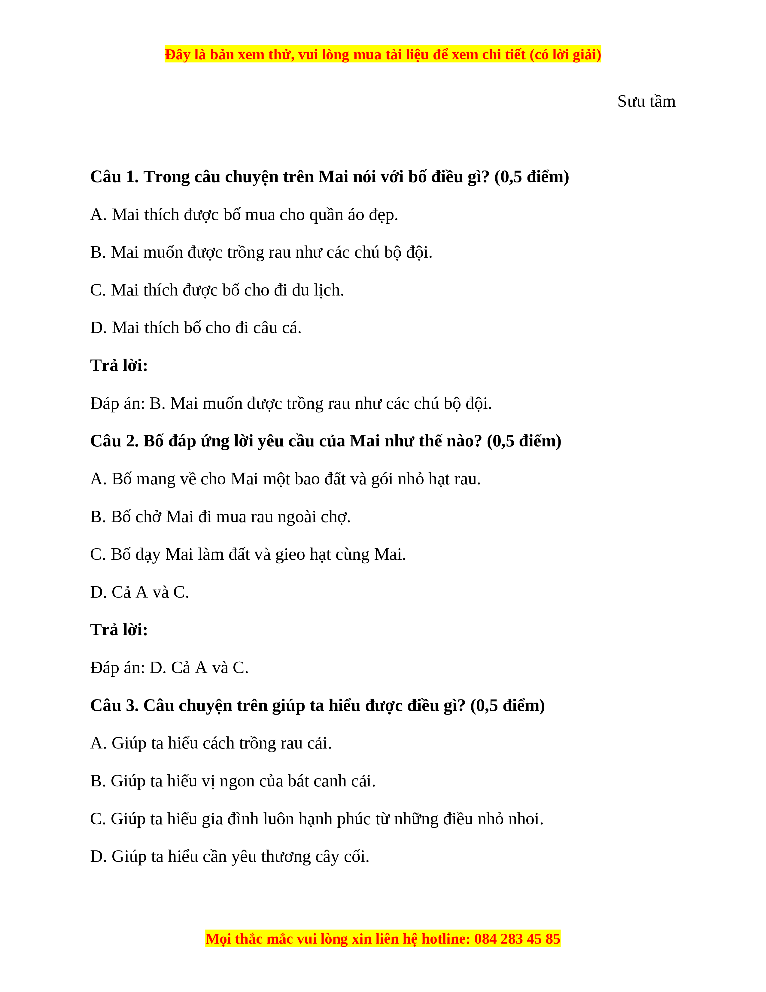 C. Bố dạy Mai làm đất và gieo hạt cùng Mai. D. Cả A và C. Trả lời: Đáp án: D. Cả A và C.