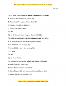 Câu 1. Trong câu chuyện trên Mai nói với bố điều gì? (0,5 điểm)